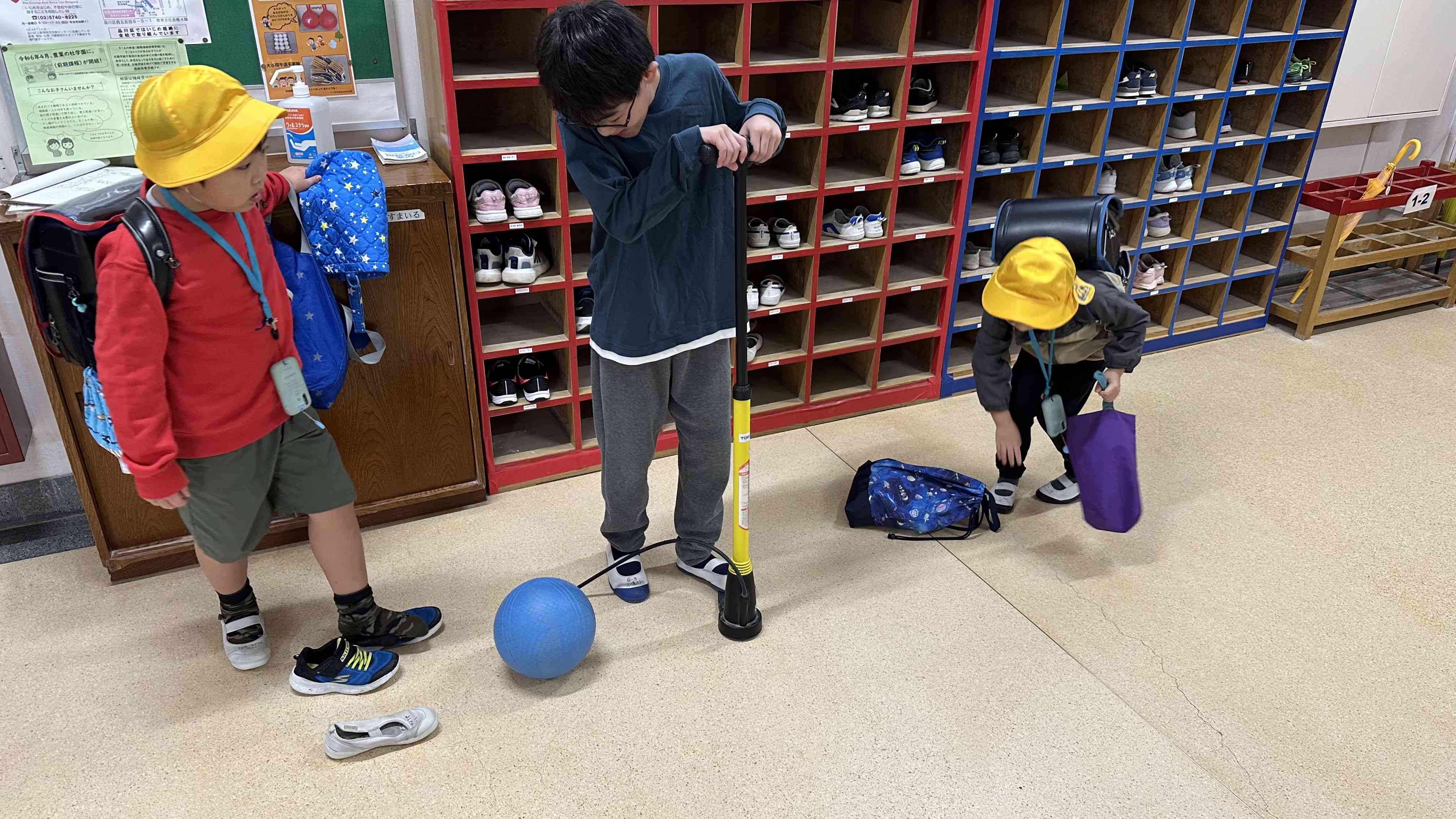 飼育栽培委員、運動委員はみんなよりも早く登校して活動しています。 飼育栽培委員は花壇への水やり、運動委員はクラスボールの空気入れと石灰倉庫の整頓をしています。 高学年として、学校のためにがんばっています。